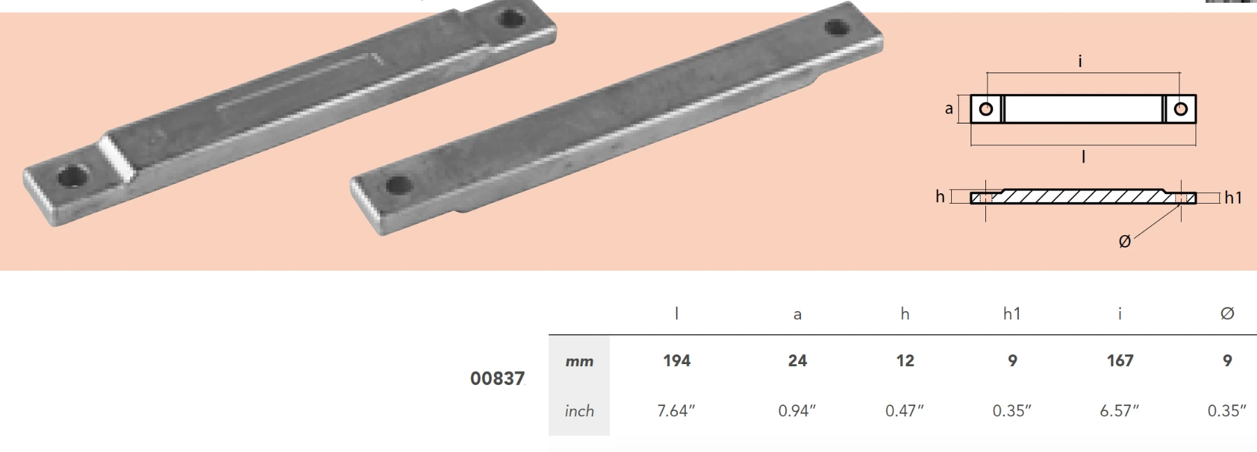 Anod i aluminium till Verado L6 300-400hk, V8 450hk, ersätter oem 8M0012083