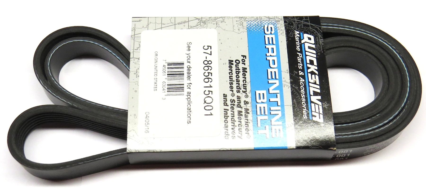 Mercruiser originalrem 57-865615Q01 eller 57-865615-001. Längd ca 1415mm X 2 (dvs remmen är mätt tvärs över) och Bredd 20mm