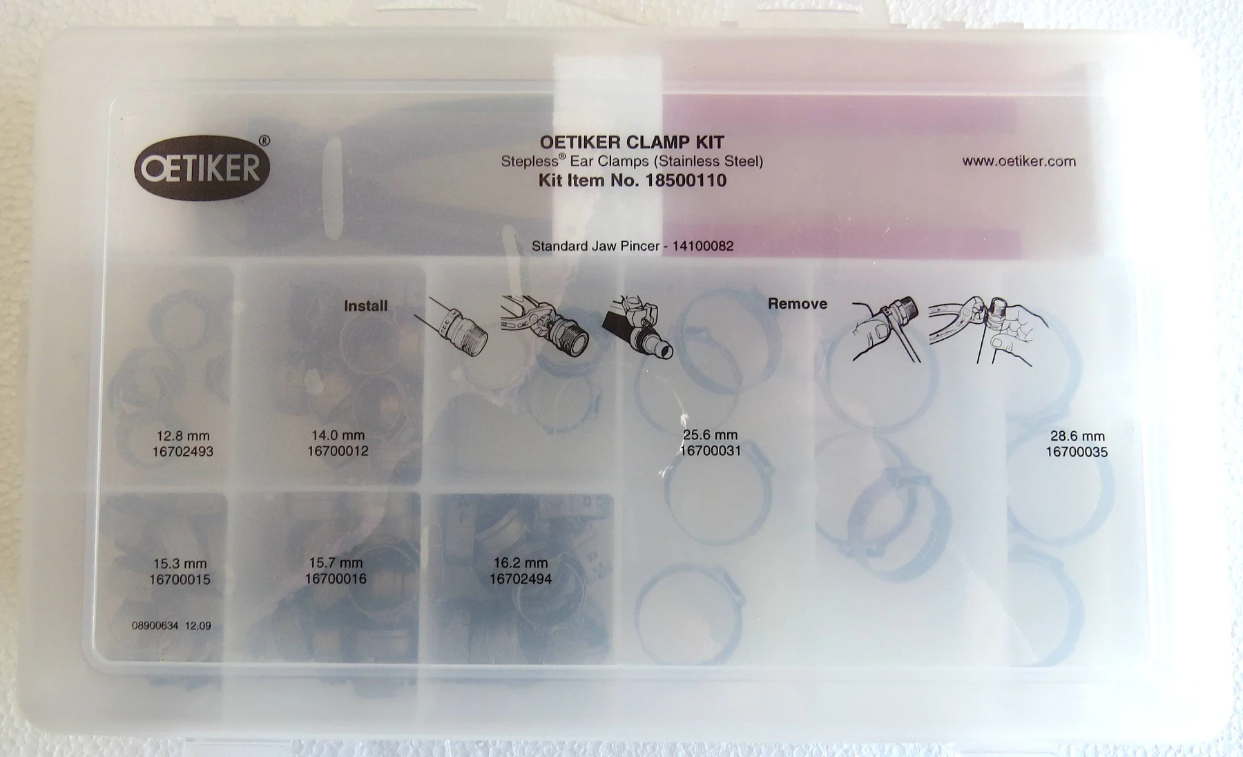 Sortimentlåda med verktyg och rostfria slangklämmor. Monteras med medföljande tång. Sitter original på de flesta marinmotorer, utombordare och inombordare. Sitter säkrare och bättre än traditionella slangklämmor.