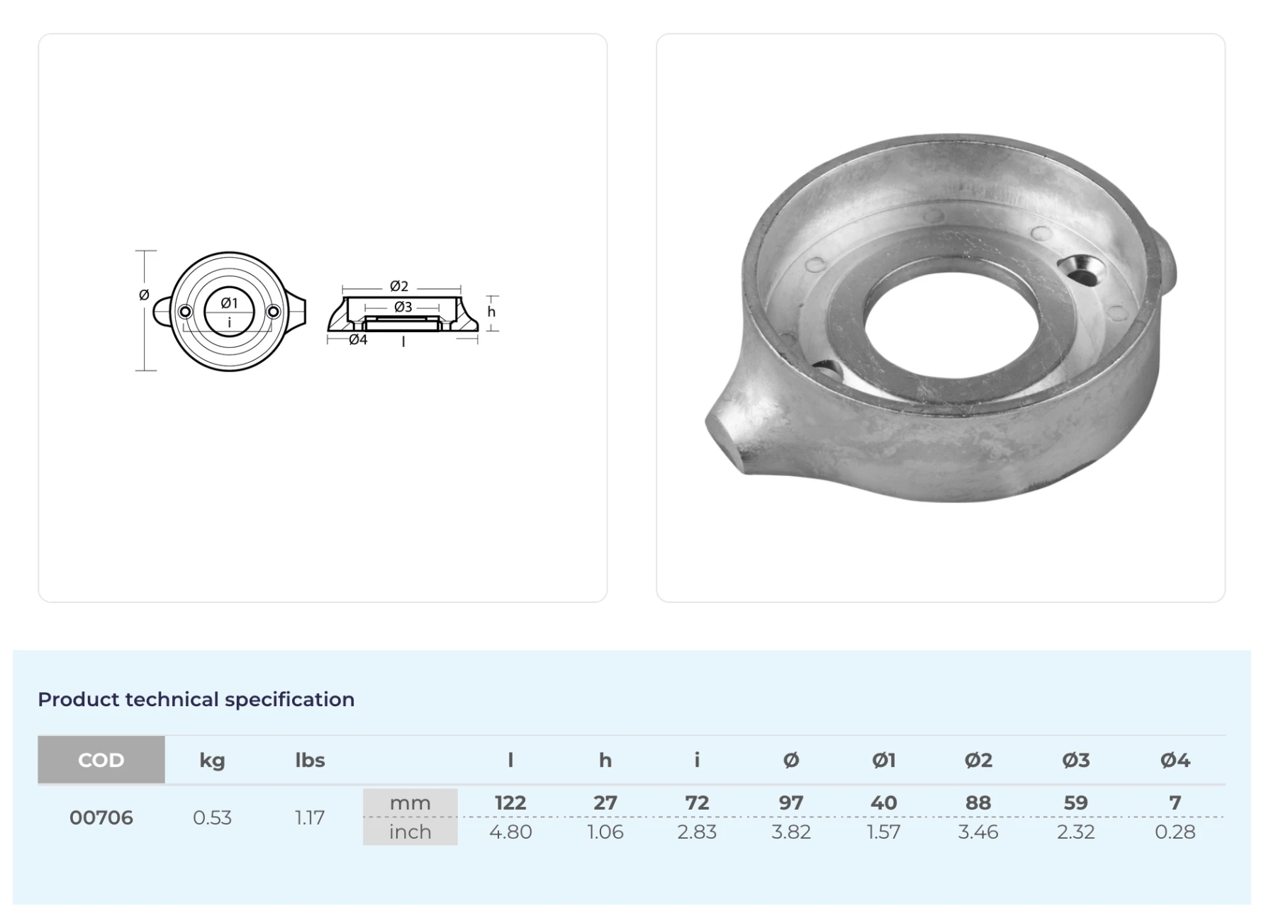 Anod i zink till Volvo Penta 120S, (00706), 851983, 876286