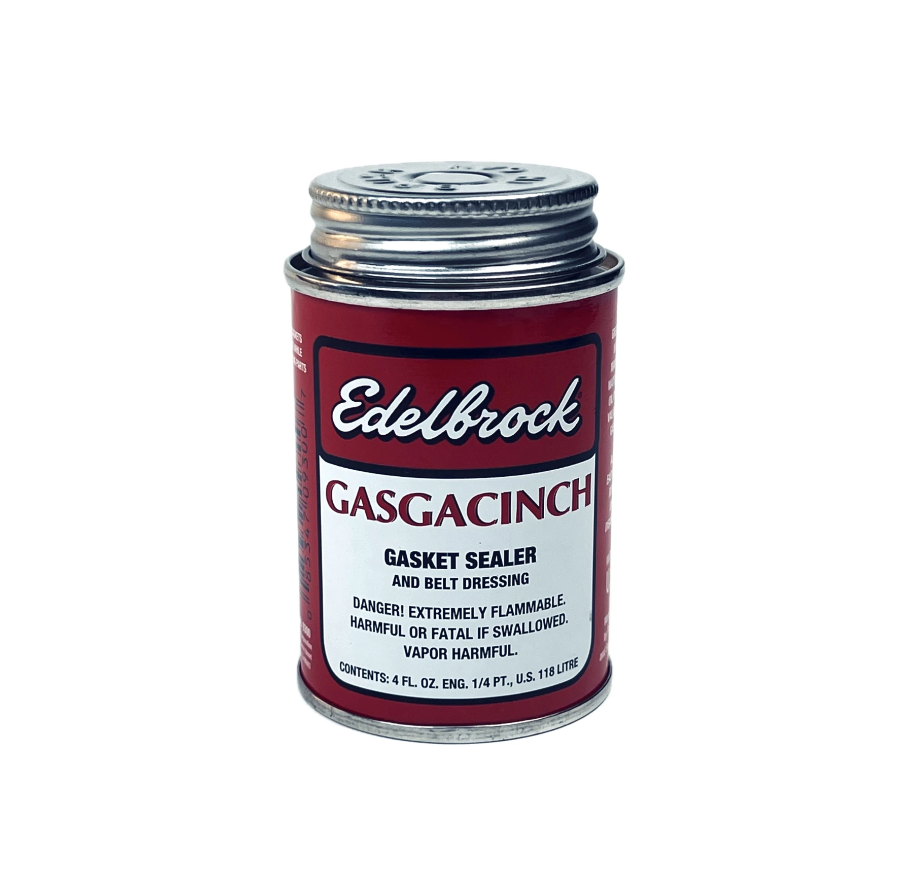 Edelbrock Gasgacinch gasket sealer assures proper sealing of all gaskets used during a manifold installation. It is also effective on water pump, oil pan and valve cover gaskets. Gasgacinch is water and oil resistant and allows easy gasket removal during parts disassembly.