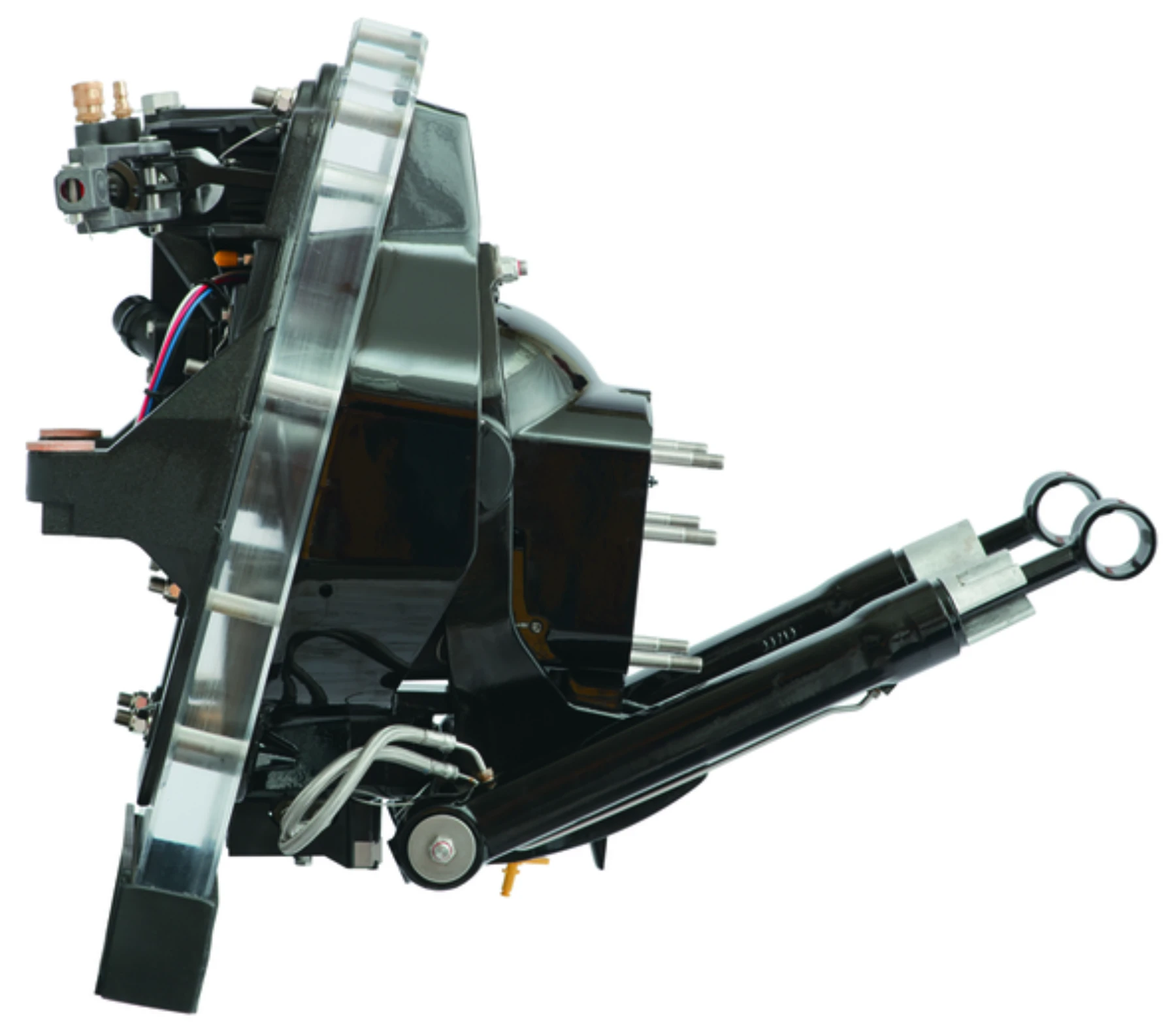 Ny komplett gen 1 sköld. Dvs Sköld, bälghus, gimbalring bälgar powertrimkolvar. Allt färdigt för montering direkt på båt.