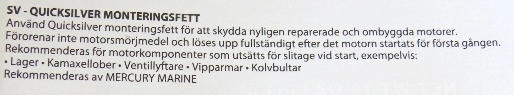 Monteringsfett. Används till känsliga delar i motorer som extra skydd vid första start efter ex renovering. Till: Olika lager, kamaxlar, lyftare, vipparmar, m.m. Burk 454 gram