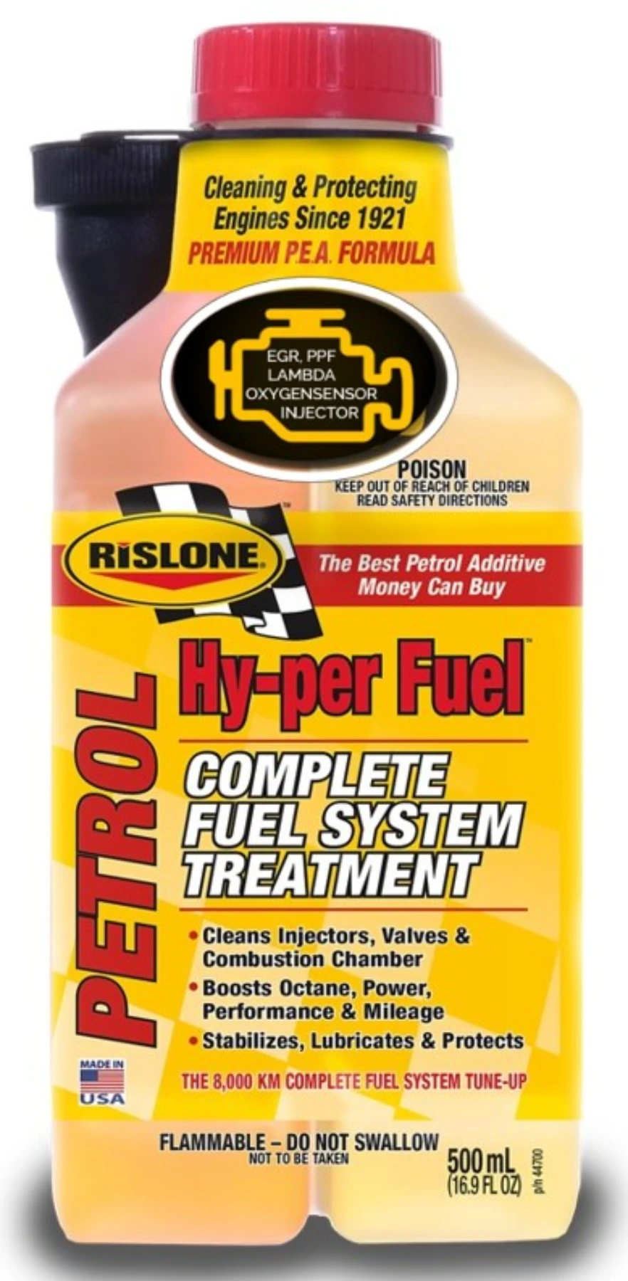 Innehåller: P.E.A. Polyetheramine en ny generations patenterad teknik som möjliggör förbättring av kvalitén på alla dagens moderna bensinkvaliteter. Förbättrade rengöringsegenskaper som återger saknad kraft och driftförhållanden.