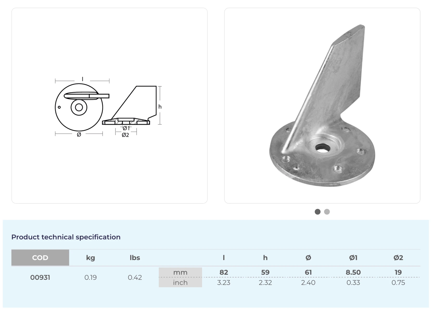 Anod i magnesium (00931MG), 5031536. Passar Evinrude/Johnson 40-70hk 1999-2006.