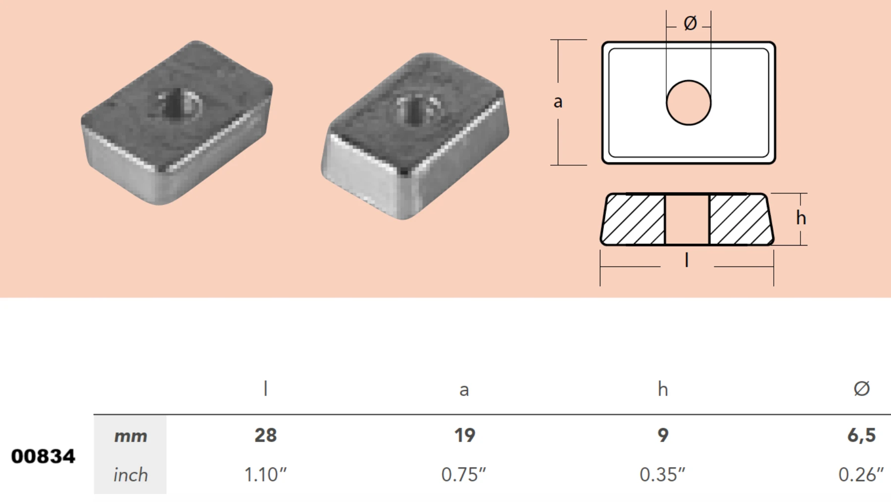 Anod i aluminium till Mercury 4-9,9hk 4-takt, ersätter 875208